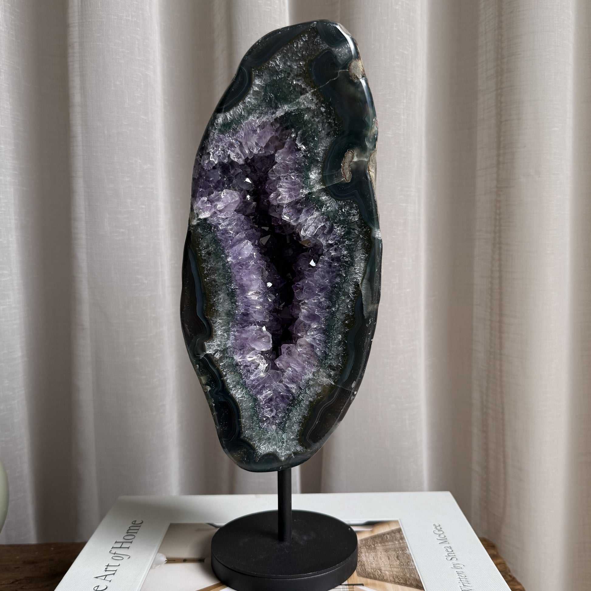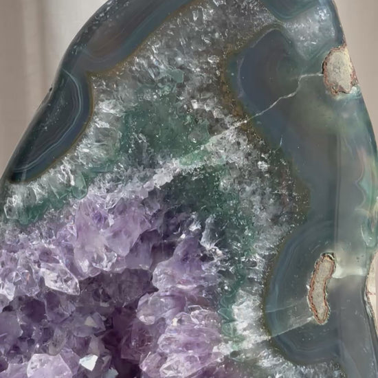 Amethyst is a highly protective stone, guarding one from negative influences, spells, and psychic attacks. It accelerates the development of psychic abilities. It also helps one overcome addictions and compulsive behaviors, bringing self-awareness and healing.