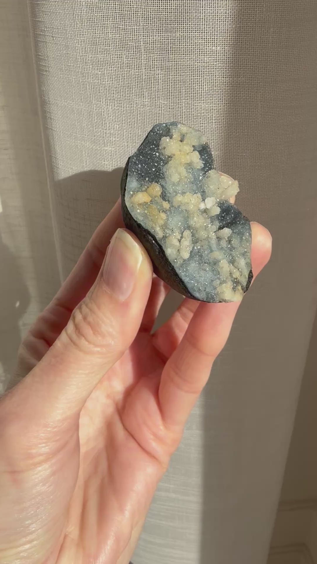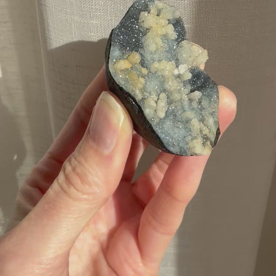 Chalcedony alleviates negative thoughts and emotions, and transforms them into feelings of joy. It encourages one to show kindness and compassion towards others. It is also believed to heal issues related to the circulatory system, bones, and eyes.