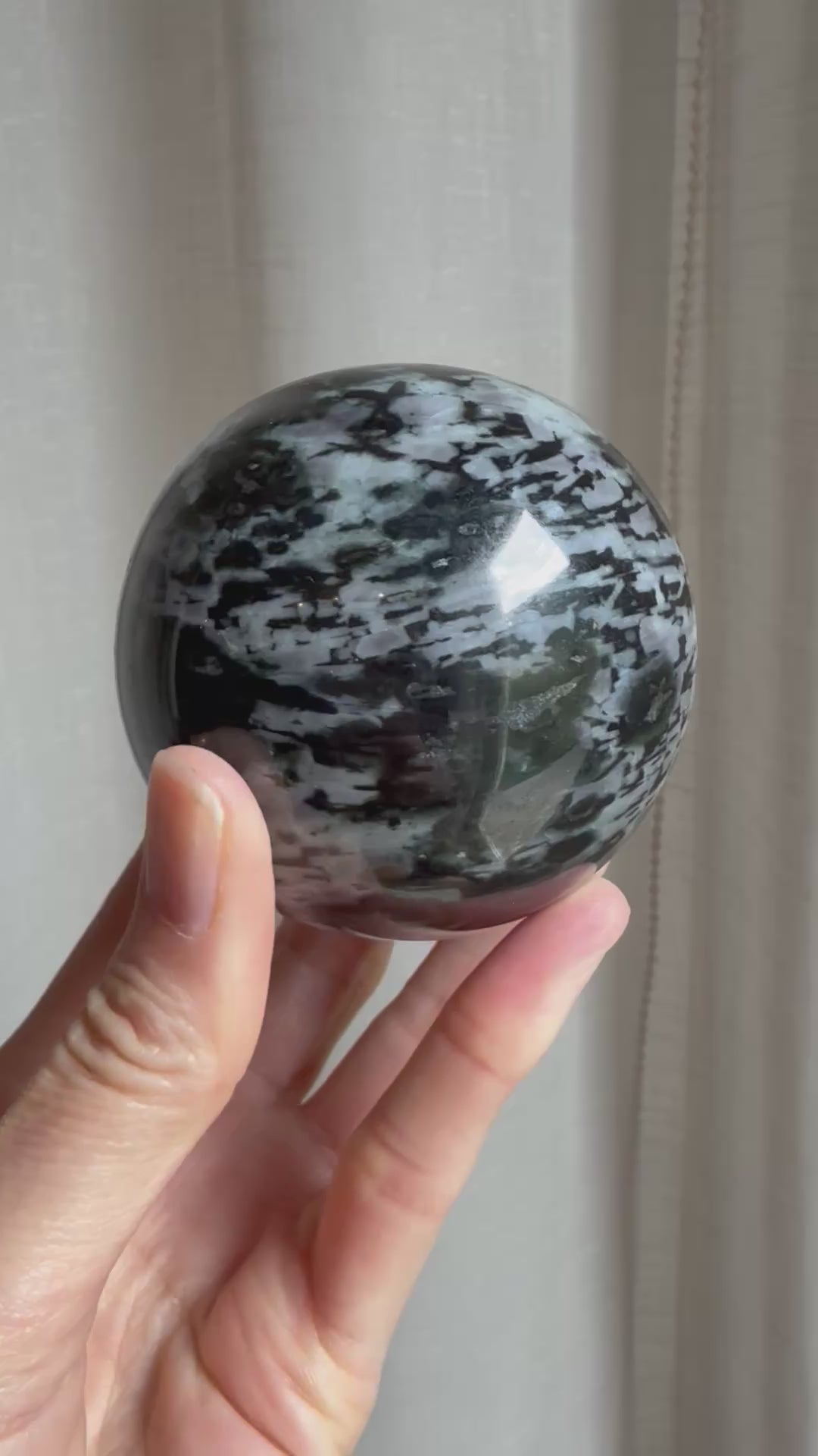 Mystic Merlinite or Indigo Gabbro is a magical and mystical stone that amplifies higher energies. It greatly enhances one's ability to connect to the spirit world for channeling, tarot, clairvoyance, and contacting the deceased. It facilitates lucid dreaming and aids dream analysis.