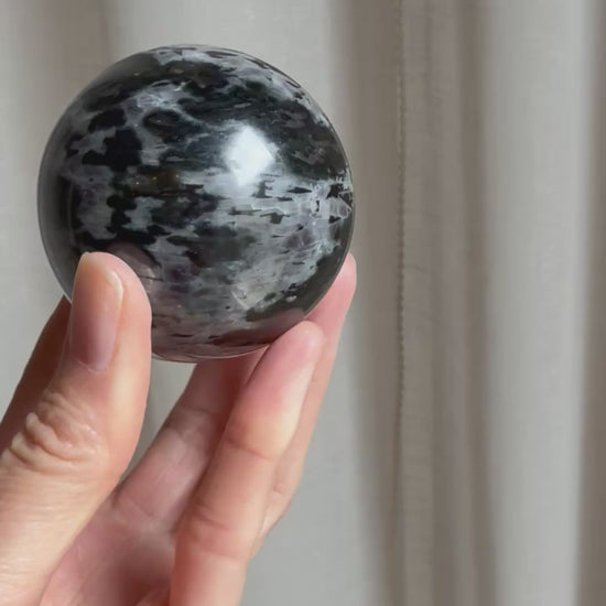 Merlinite or Indigo Gabbro is a magical and mystical stone that amplifies higher energies. It greatly enhances one's ability to connect to the spirit world for channeling, tarot, clairvoyance, and contacting the deceased. It facilitates lucid dreaming and aids dream analysis.