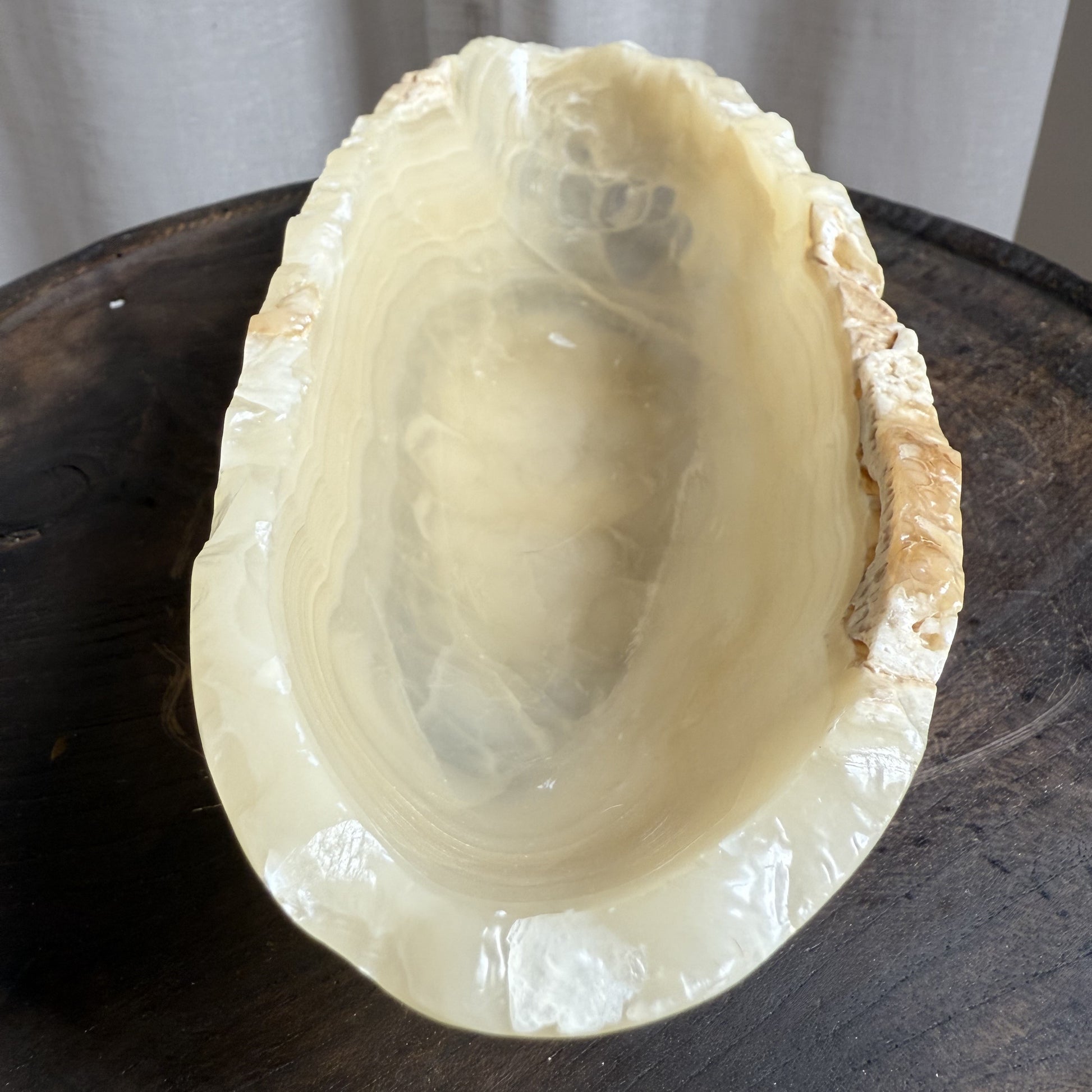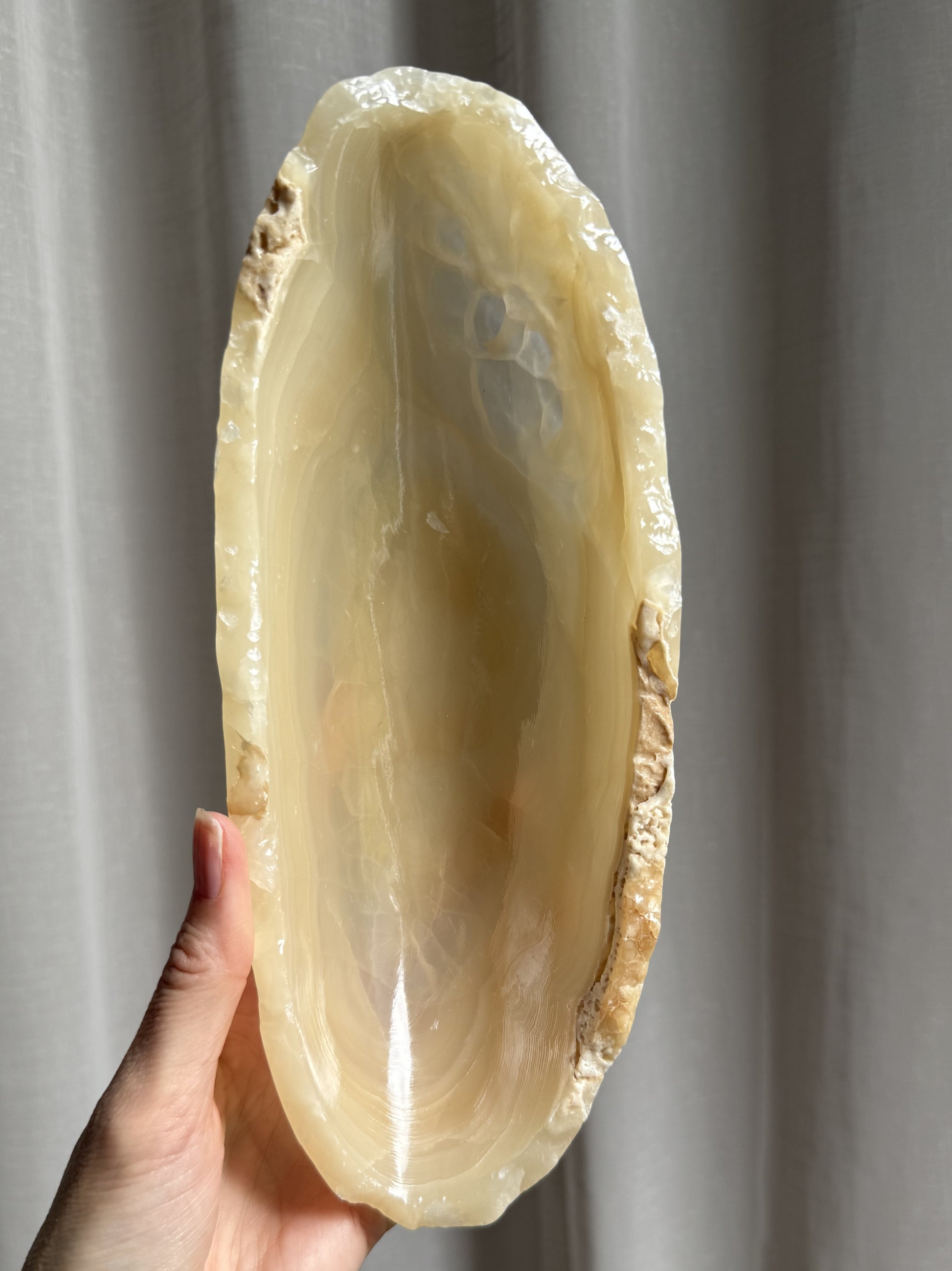 This elegant Onyx Dish is a timeless statement of sophistication and natures Artistry. This exceptional stone, forged deep within the earth over millennia, is prized for its translucent beauty, captivating striations, and an unmistakable aura of luxury.