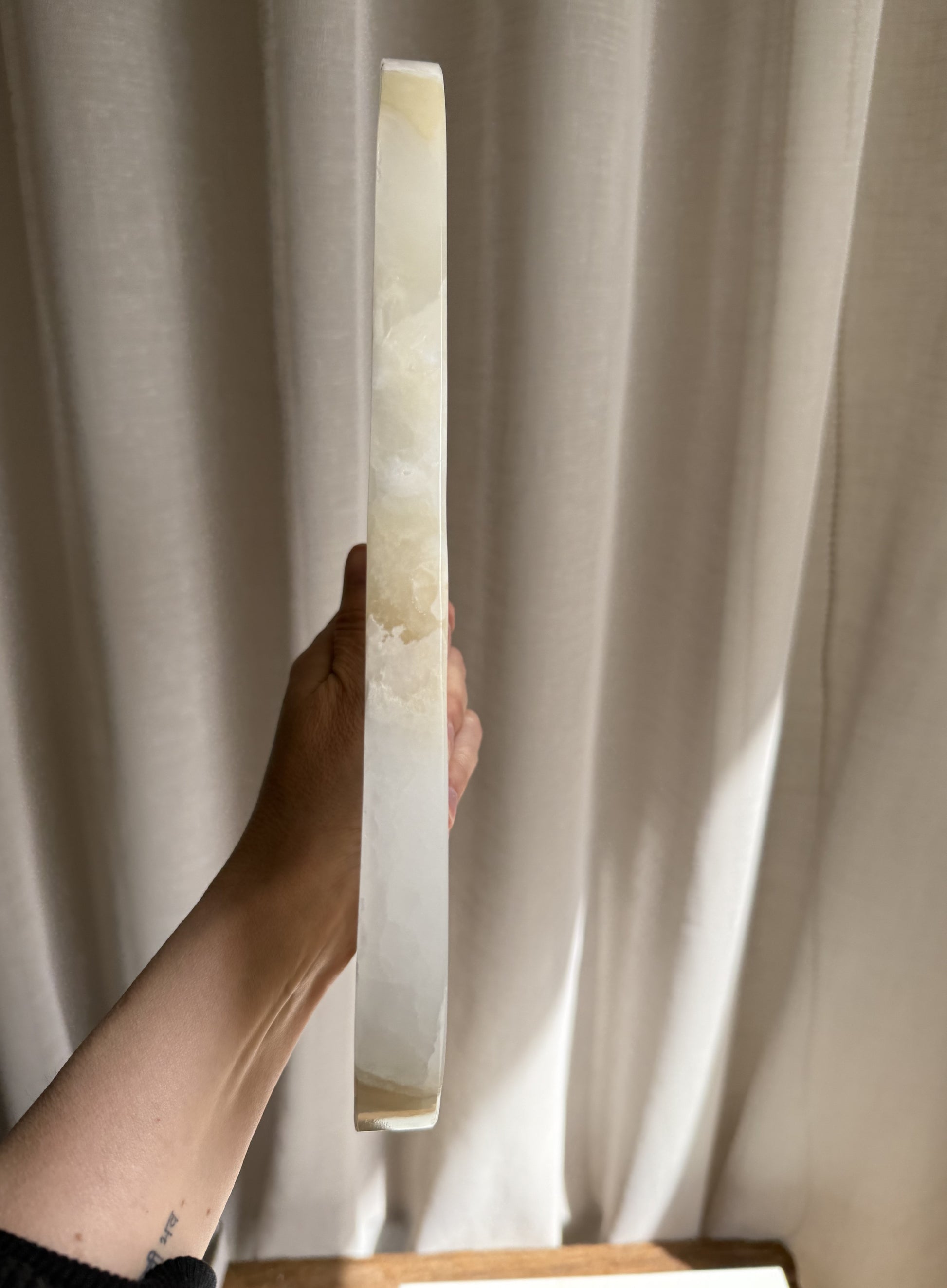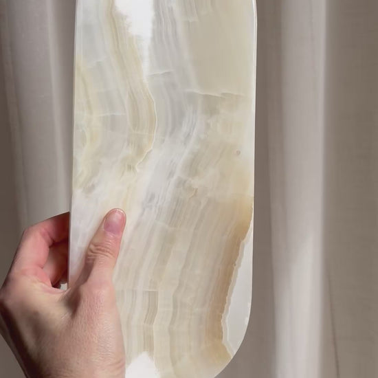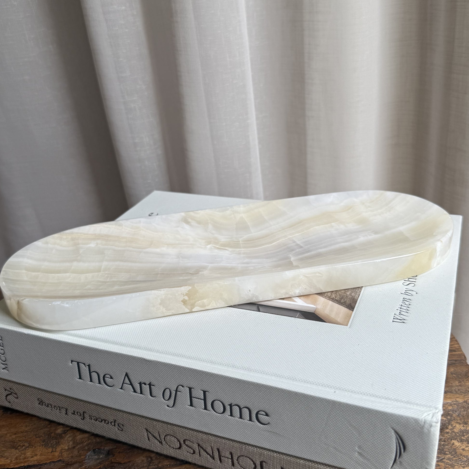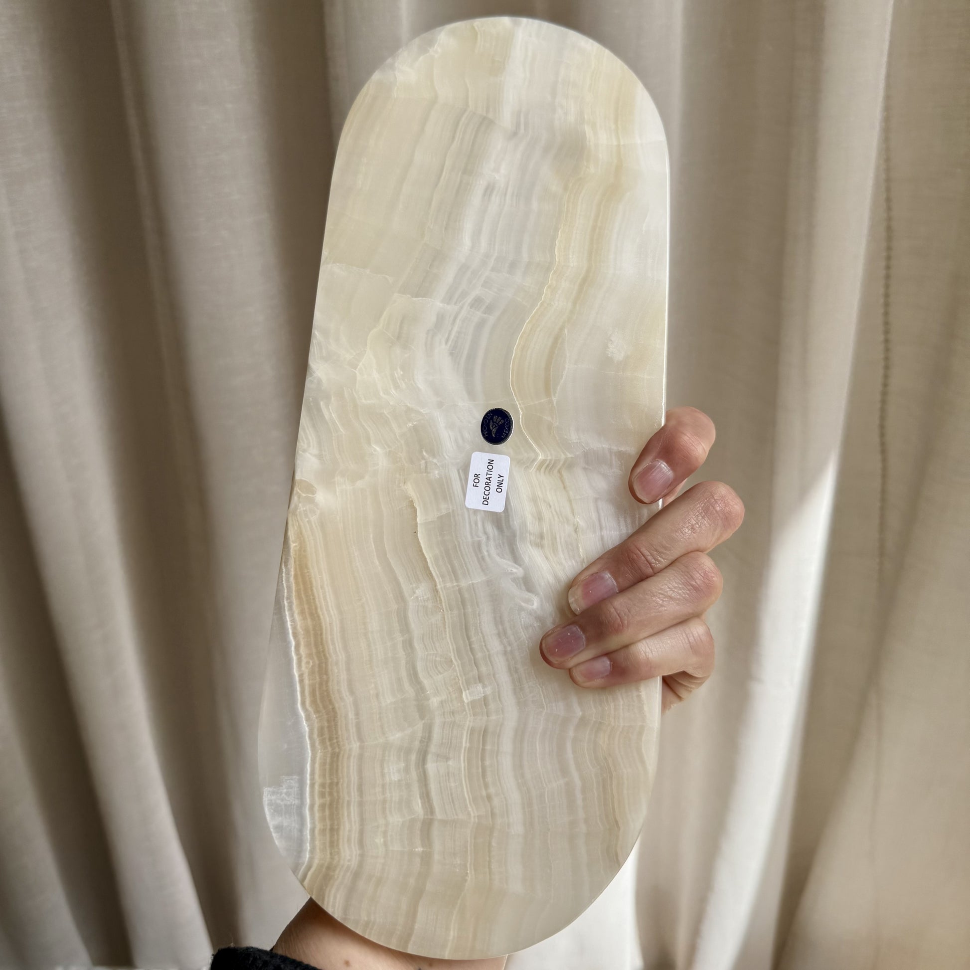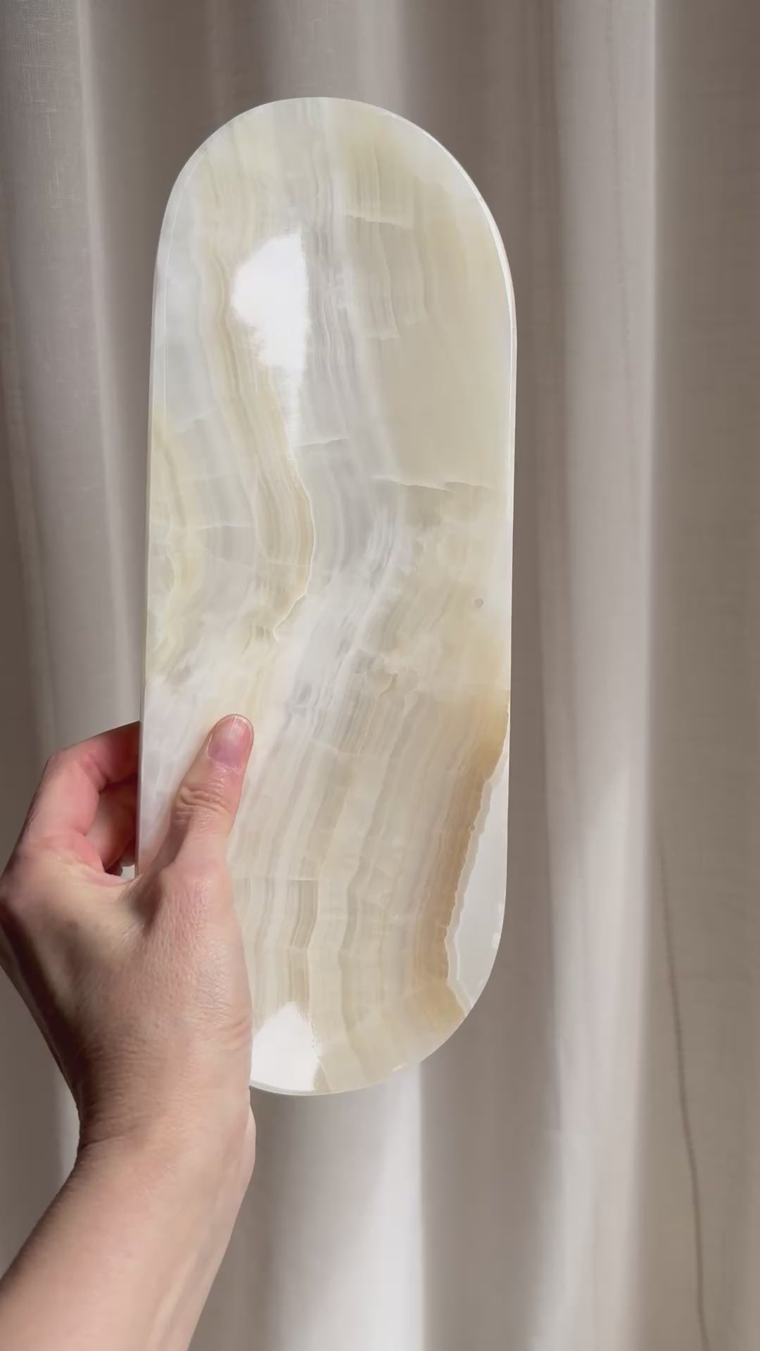 This elegant Onyx Dish is a timeless statement of sophistication and natures Artistry. This exceptional stone, forged deep within the earth over millennia, is prized for its translucent beauty, captivating striations, and an unmistakable aura of luxury.