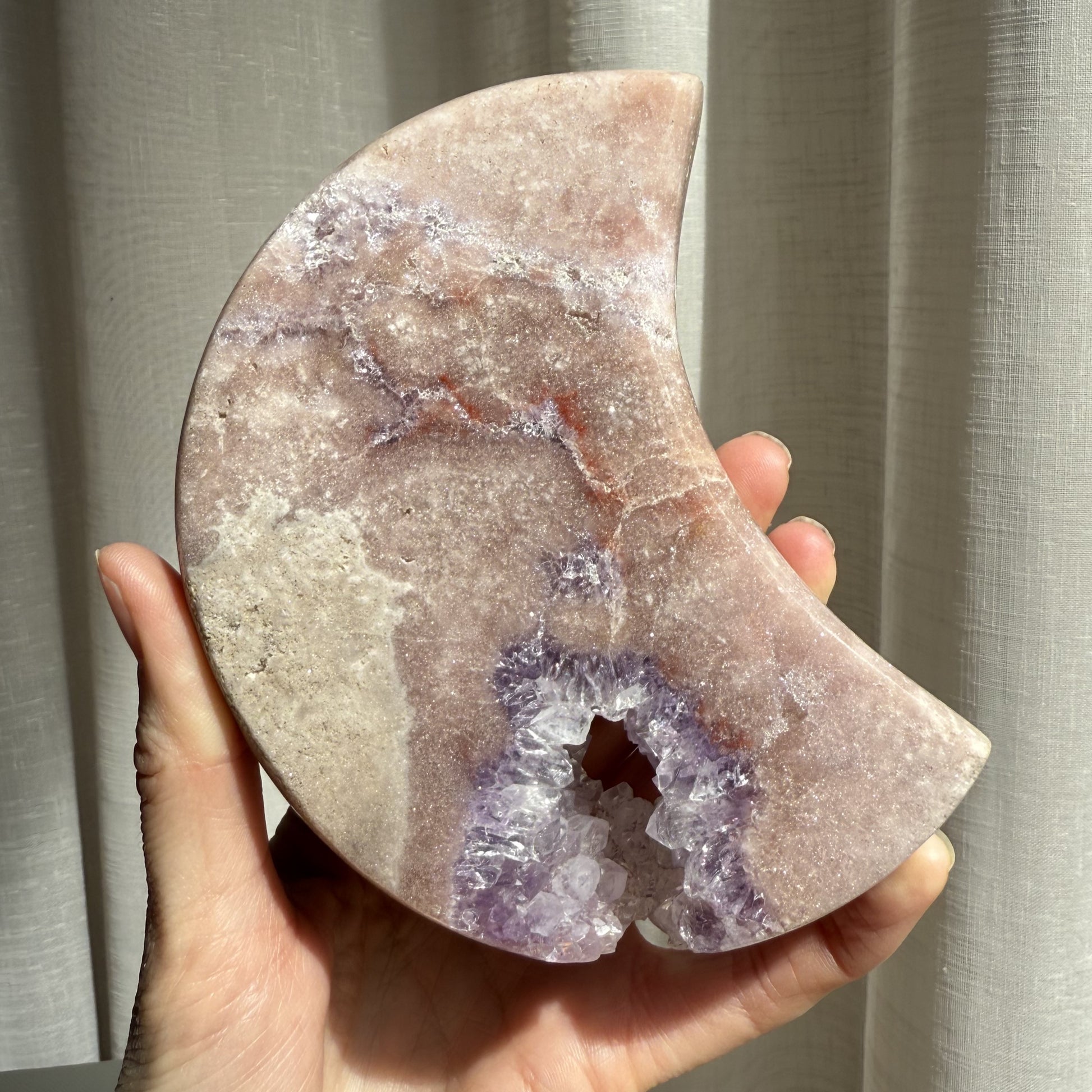 Pink Amethyst provides calmness and comfort during stressful situations, such as a relationship breakdown or job loss. It promotes a positive self-image and encourages one to be kind, gentle and compassionate with themselves and others.