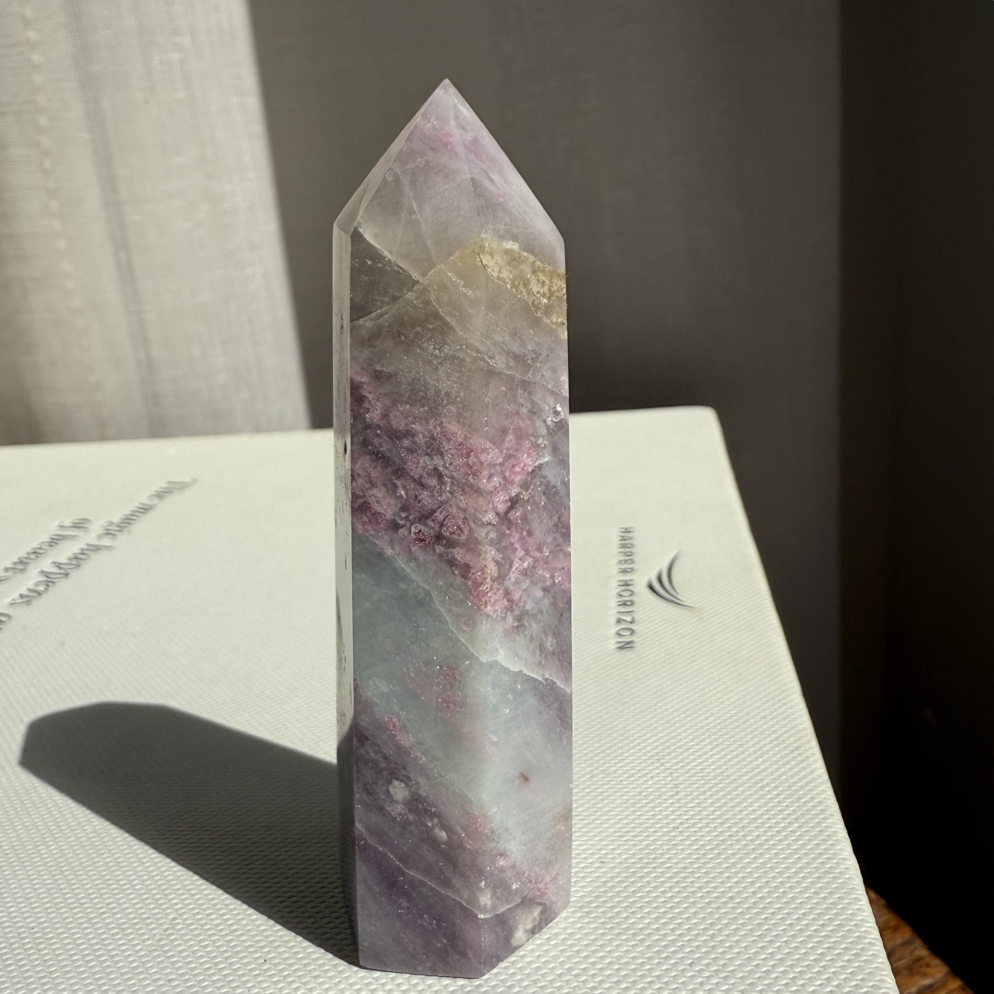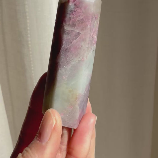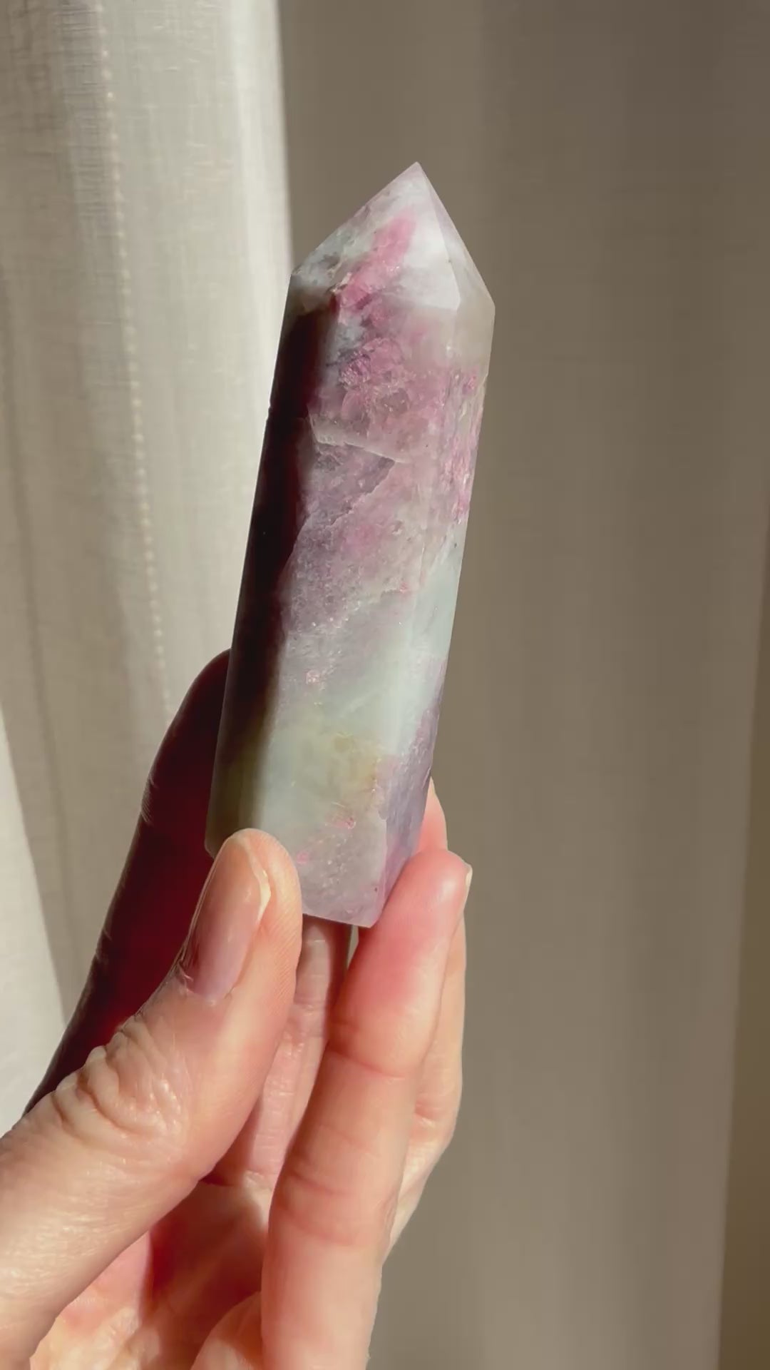 Plum blossom tourmaline is considered to create strong channels of energy for clearing and purification, promote inspiration and happiness, reduce fear, and build self-confidence among its users. It is also said to be a physical bridge to the spiritual.