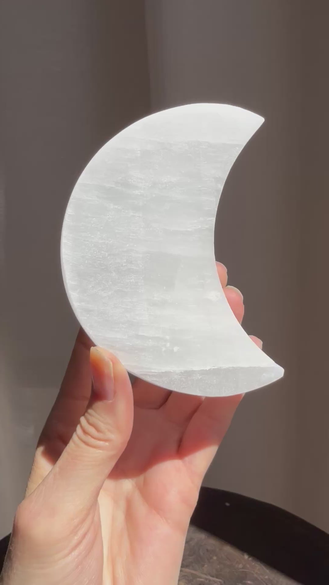 Selenite is a powerful stone with a fine vibration. It purifies the aura and protects one from negative influences. It assists spiritual insight and aids one in seeing the deeper picture. It can be used to form a strong protective grid around a home or office space