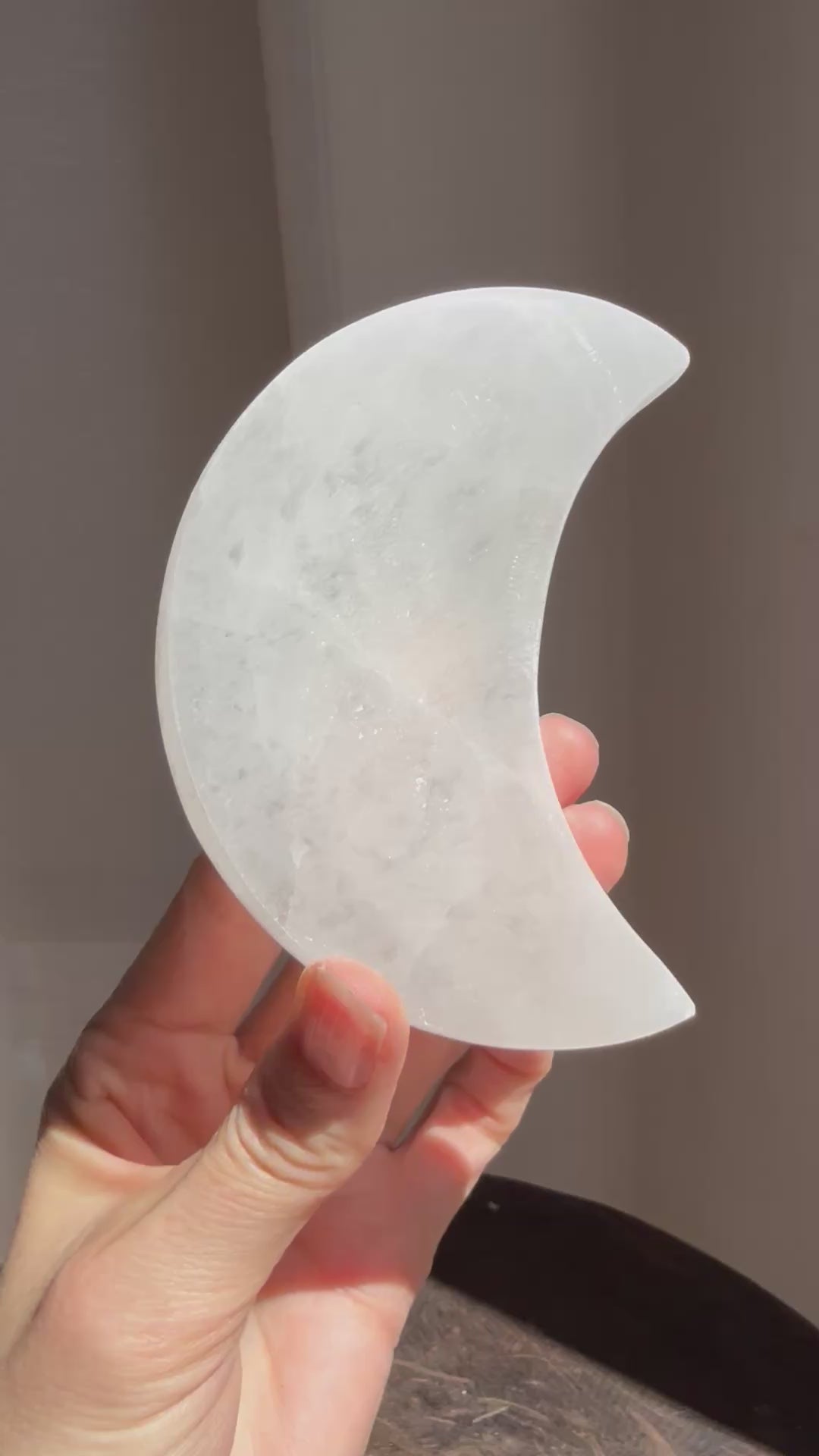 Selenite is a powerful stone with a fine vibration. It purifies the aura and protects one from negative influences. It assists spiritual insight and aids one in seeing the deeper picture. It can be used to form a strong protective grid around a home or office space