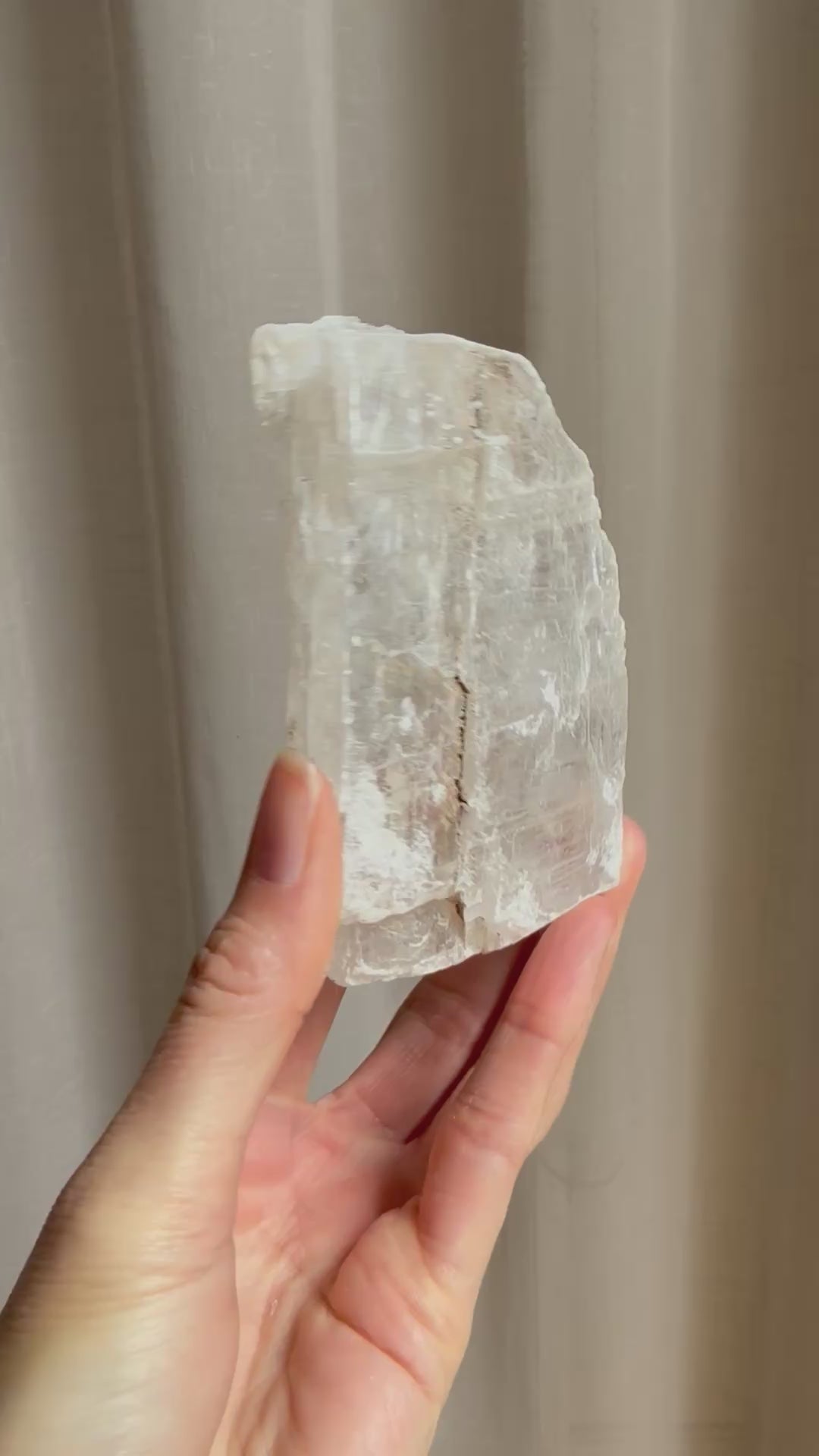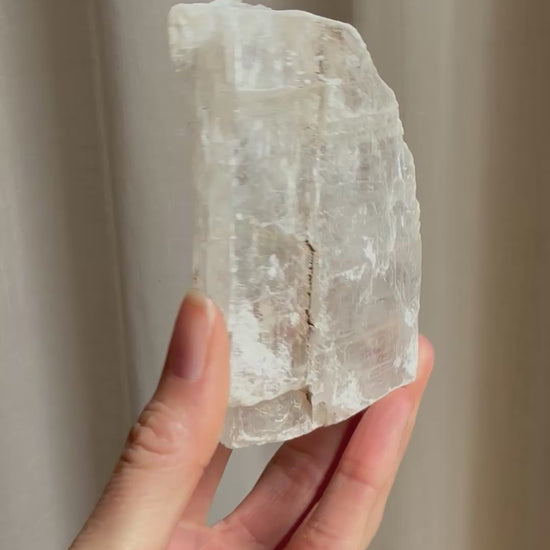 Selenite is a powerful stone with a fine vibration. It purifies the aura and protects one from negative influences. It assists spiritual insight and aids one in seeing the deeper picture. It can be used to form a strong protective grid around a home or office space