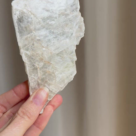 Selenite is a powerful stone with a fine vibration. It purifies the aura and protects one from negative influences. It assists spiritual insight and aids one in seeing the deeper picture. It can be used to form a strong protective grid around a home or office space