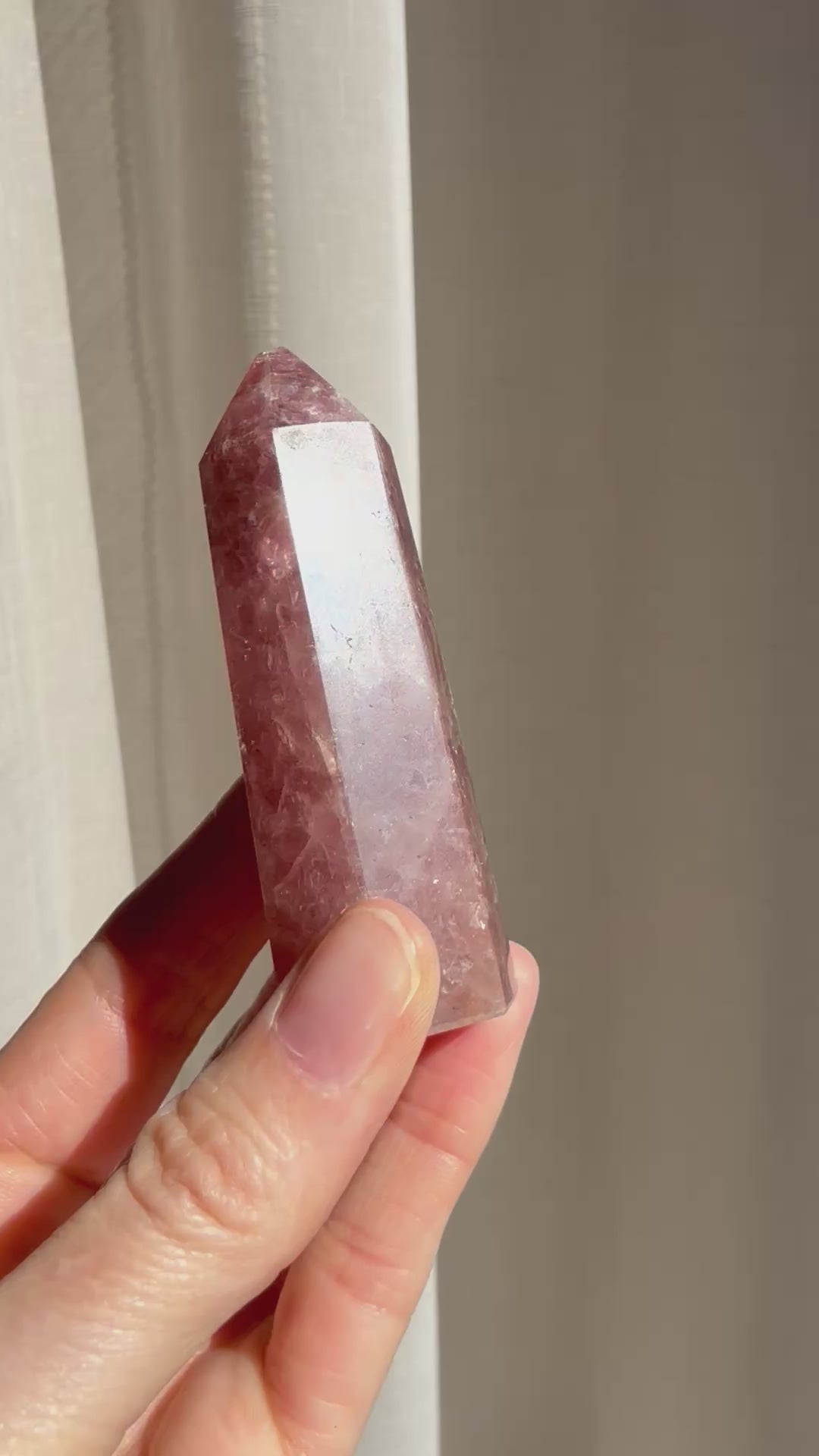 Strawberry Quartz has a playful and joyful energy that allows one to reconnect with their inner child. It encourages one to step back and feel the beauty of the present moment. It stimulates imagination and is greatly beneficial for those in a creative field of work.