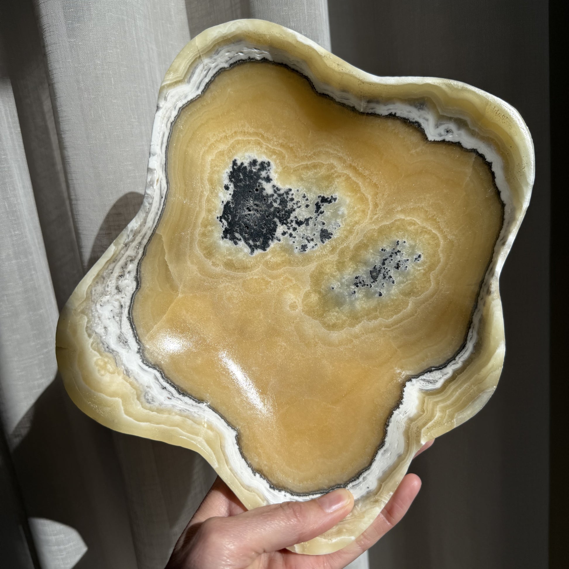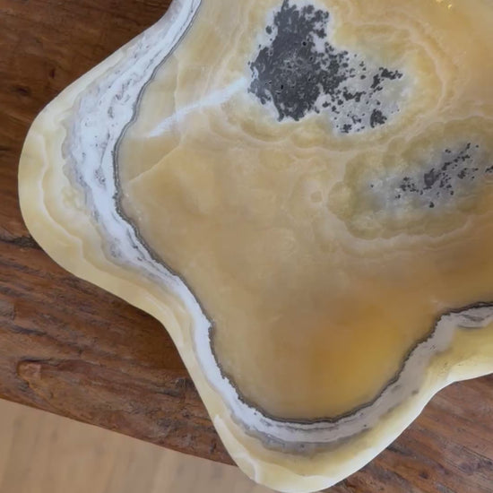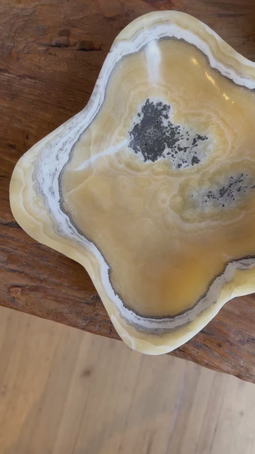 Zebra Calcite, also known as Yellow Onyx make the most stunning bowls. Each bowl is unique with its different colours and patterns. This bowl will make a beautiful statement piece for your home.
